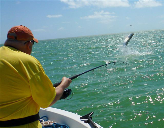 Day one the weather was warm and the wind was Southeast. Conditions were still favorable to try and catch a Tarpon in the backcountry. The Tarpon action had slowed today but Larry came up with a 130 lb fish that must have jumped 10 times. Larry used the